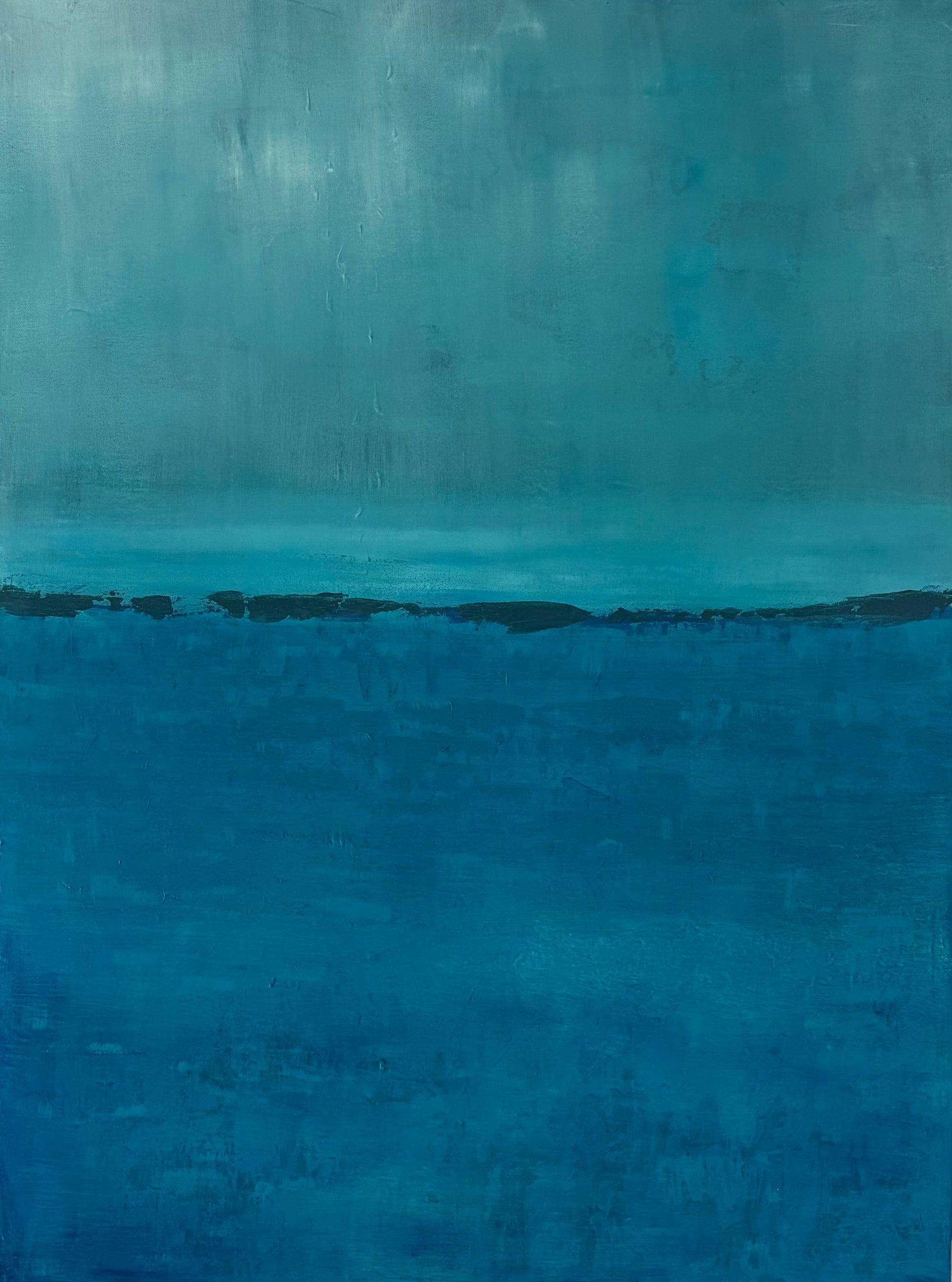 Between Sea and Sky captures the sublime dichotomy of tranquil azure skies and the tumultuous dance of choppy waters, evoking a serene yet dynamic atmosphere that enchants the beholder. This exquisite piece invites contemplation, allowing one to experience the serene embrace of nature’s contrasting elements in a harmonious tableau.